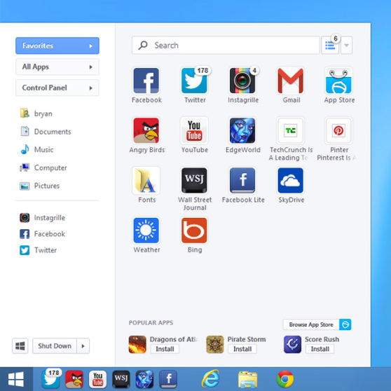 HOWEVER you don’t need to wait for the W8 update. I’ve found a fantastic free programme called Pokki, which does it all for you now. The major benefits of Pokki is that it puts back the Start button, as well as giving you the option of booting up straight onto the desktop, instead of the new W8 tiles screen, which so many people hate. It is fully customisable so you can choose what shortcuts you want to have displayed, such as My Documents, Pictures etc. It’s really good and I’d advise anybody using W8 to install it now. You can download it free from http://www.pokki.com